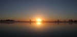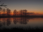 zonsondergang en spiegelende bomen.